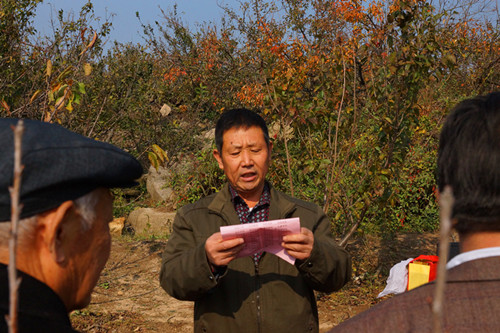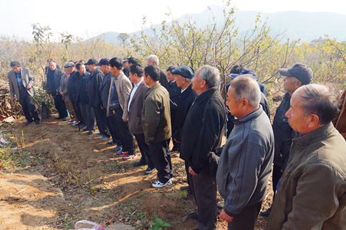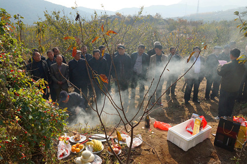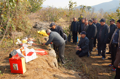 2015年11月10日(农历9月29日)上午山东省即墨 海阳 乳山 文登 莱阳等宫氏宗亲,在传统的十月一祭祖节日即将到来之际,乘车前往山东省文登市宫氏先祖古墓举行祭祖活动!整个活动庄重严肃,富有传统祭祖意义,祭祖程序是:敬献供品、烧纸上香、敬献美酒、朗诵祭文、逐个唱名、集体跪拜、敬香压纸、合影留念。