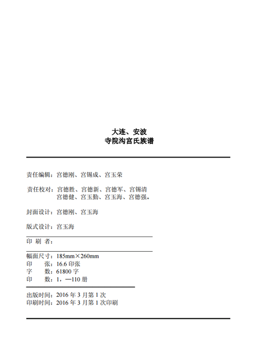 《大连安波寺院沟宫氏族谱》胜利出版发行