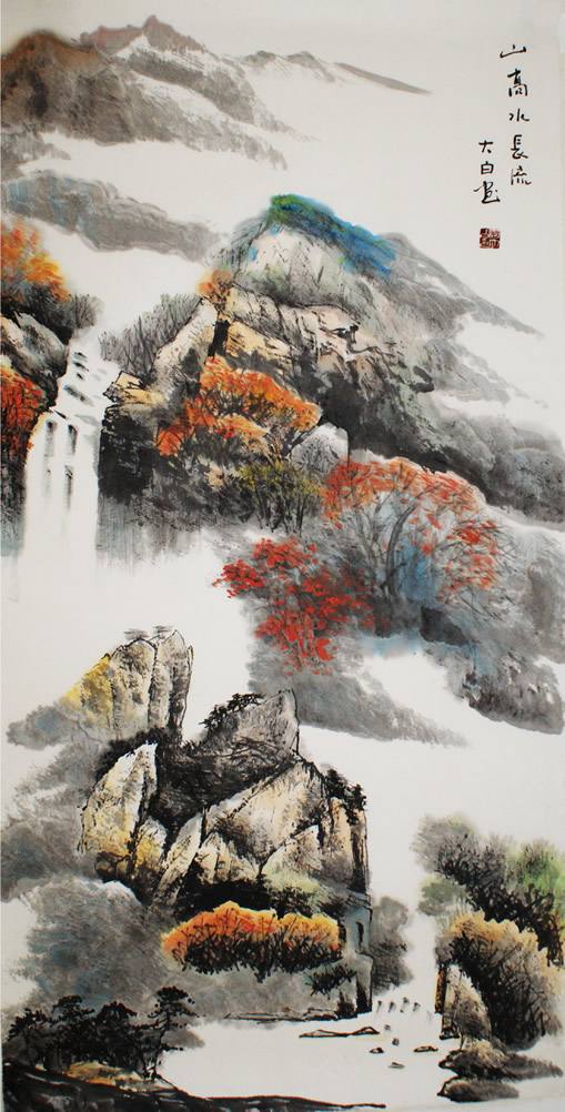 宫大白,安徽省太和县人民法院,他自幼酷爱丹青,克承家学,其绘画根于《芥子园》、《马骀画谱》,涉及尚广,主攻山水、牡丹、人物,扎根传统,力求创新,其画风明晰,清新而不俗,永而不拙重,自然之中崇意境,给人以深沉清幽之感。
